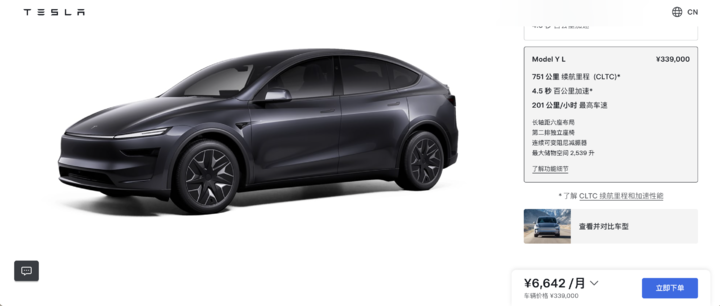 特斯拉 Model Y L 价格公布:33.9 万元起